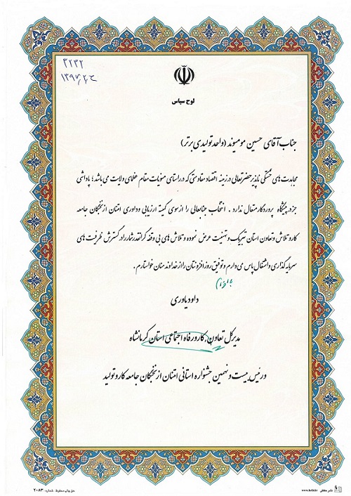 انتخاب شرکت مارپیچ باختر MBC به عنوان واحد تولیدی برتر در جشنواره امتنان از نخبگان جامعه کار و تولید در اردیبهشت سال 97