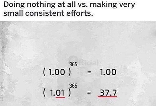 تفاوت هیچ کاری نکردن و یک کار خیلی کوچک را یک سال هر روز تکرار کردن به زبان ریاضی