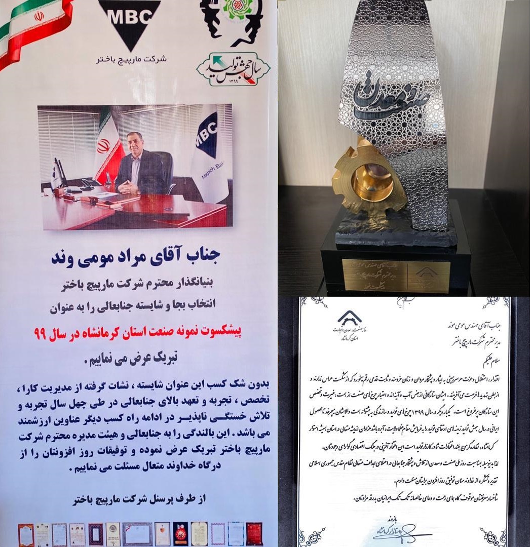 انتخاب آقای مراد مومی وند بنیانگذار شرکت مارپیچ باختر به عنوان پیشکسوت نمونه ی صنعتی استان کرمانشاه- تیرماه 1399