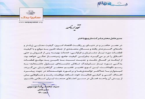 انتخاب شرکت مارپیچ باختر (MBC) به عنوان تامین کننده برتر سایپا یدک در سال 1400