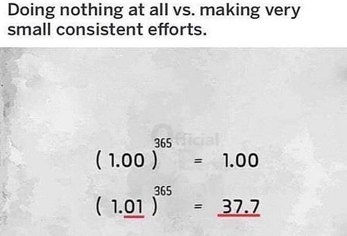 تفاوت هیچ کاری نکردن و یک کار خیلی کوچک را یک سال هر روز تکرار کردن به زبان ریاضی